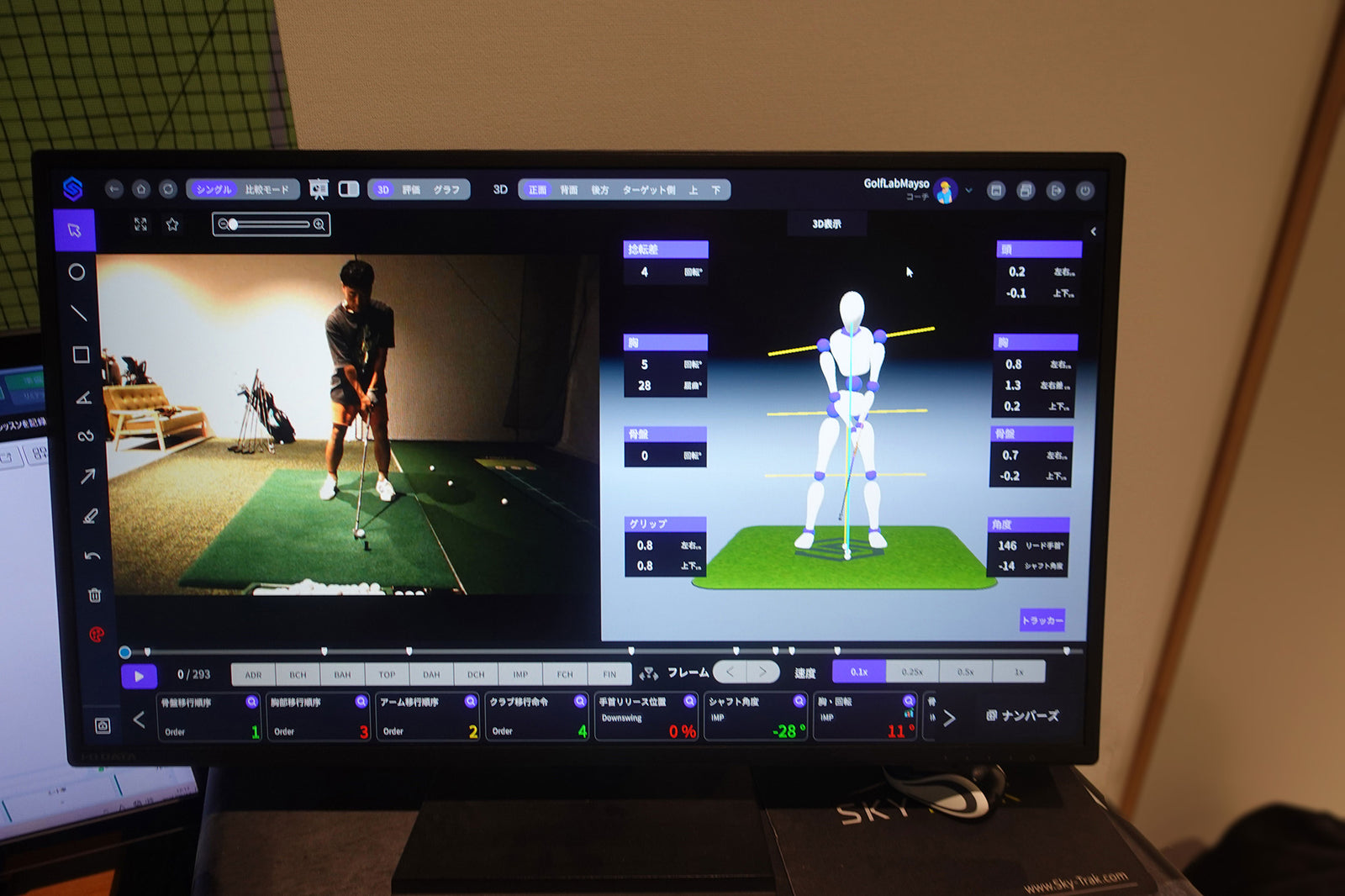 「B’s Golf Garden箕面店では、グループレッスンのほかに、個別ブースでプライベートレッスンが受けられる”メイソウ ゴルフ ラボ”も併設しています。メイソウ ゴルフ ラボは、フライトスコープMevo Rangeにプロパッケージとフェースインパクトロケーションを導入。さらに、体の動きをAIで3次元で解析して、ビジュアル化、数値化するボディーモーションも導入しています。会員のお客様に、クラブパスや、Hプレーンなどのクラブの動きの解析から体の動きまで計測することで、現在のスイングを数値化。また、このデータをグループレッスンのコーチと共有化し、レッスンに活かしたりと、単にグループレッスンだけに留まらない個人に最適なレッスン形態を実現しています。お客様もどんどん増えていて、質の高いレッスンスタイルに満足していただいています。」(岩本さん)