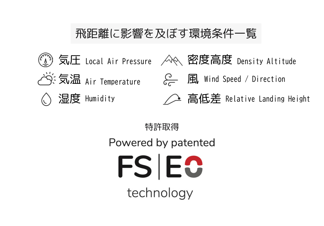• 特許「FlightScope EO (環境オプティマイザー)テクノロジー」搭載。アプリと連動して現在利用しているロケーションのリアルタイム気候・地理条件を分析し「打つべき推奨距離」を算出します。