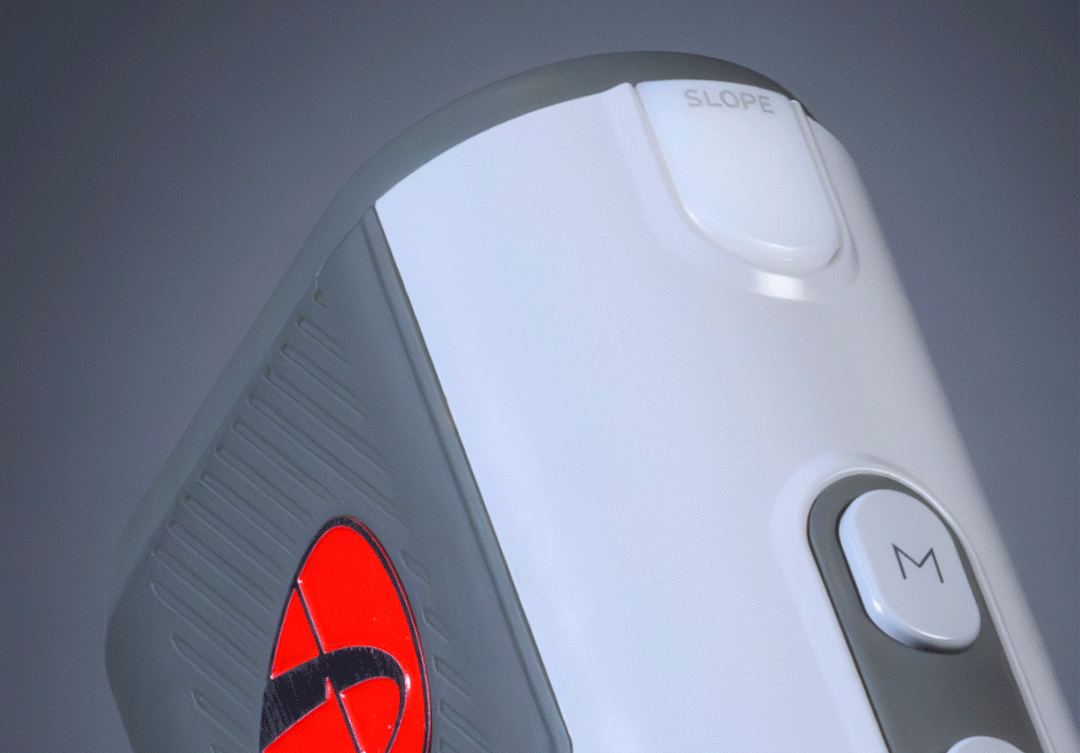 もちろん傾斜(スロープ)を勘案した距離測定機能を搭載。同伴プレーヤーからスロープ機能のオン・オフが一目でわかるランプ付きです。