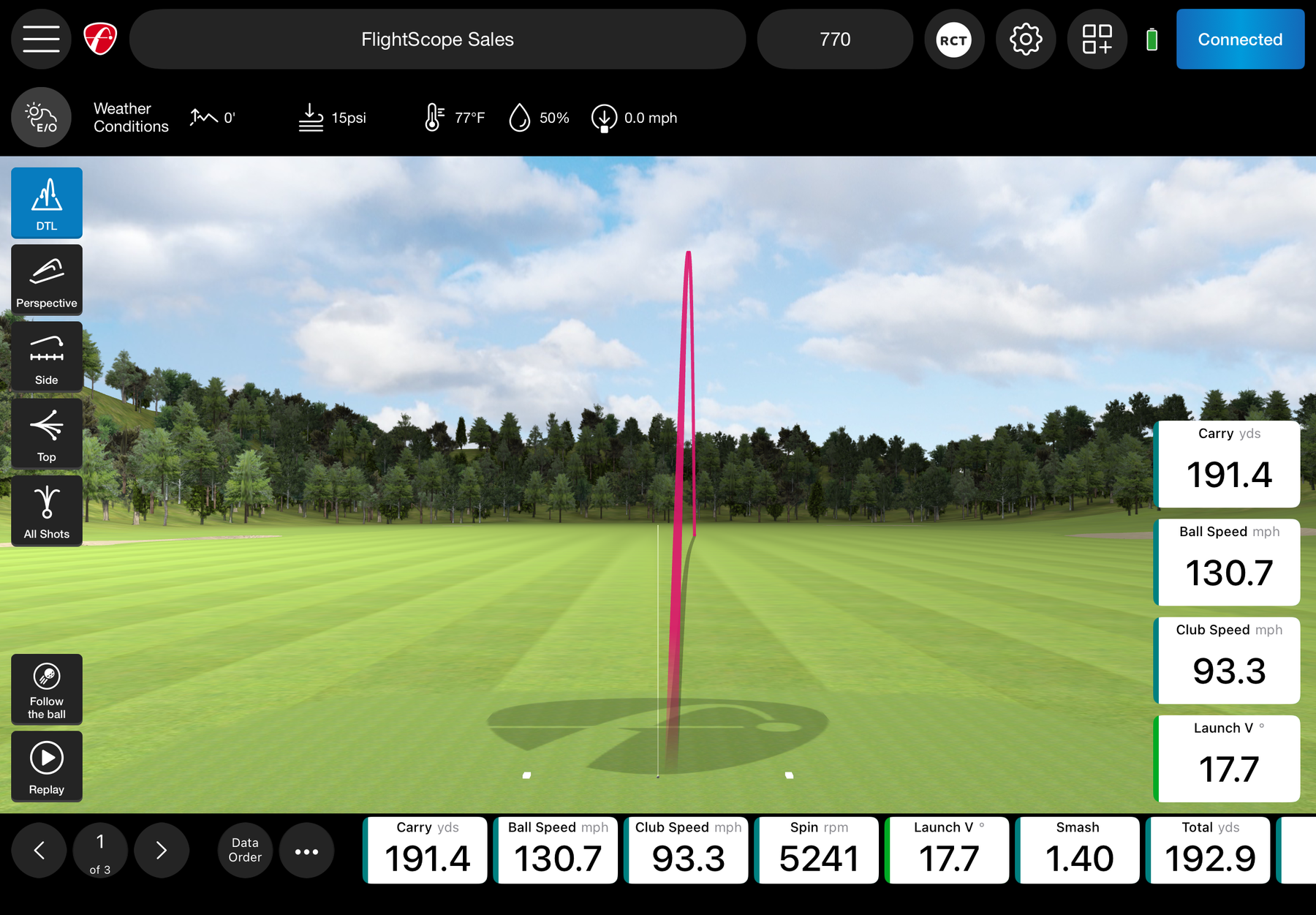 レーダーデータ、ビデオ機能、3D軌道などを活用し、指導、フィッティング、練習ができる、包括的でカスタマイズ可能なモバ イルアプリです。フライトスコープの弾道測定器をご購入いただくと無料でダウンロードして活用できます。