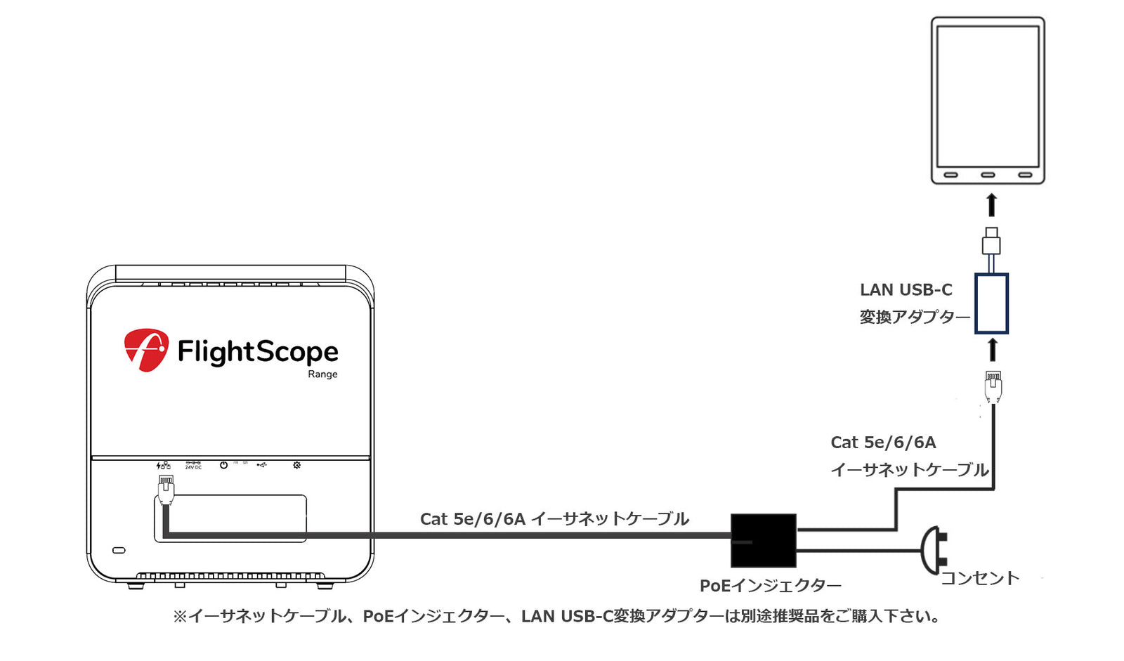Range Gen2は、PoEインジェクター経由でPC、iOS、およびAndroidデバイスとイーサネット接続が可能です。