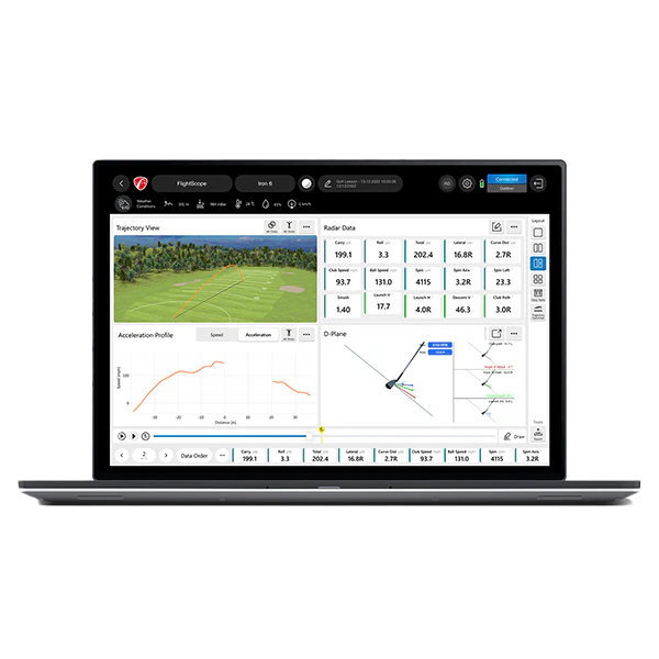 包括的かつカスタマイズ可能な PCアプリで、ユーザーはレーダーデータ、ビデオ 機能、 3D軌道などを使用して指導、フィッティング、練習を行うことができます。